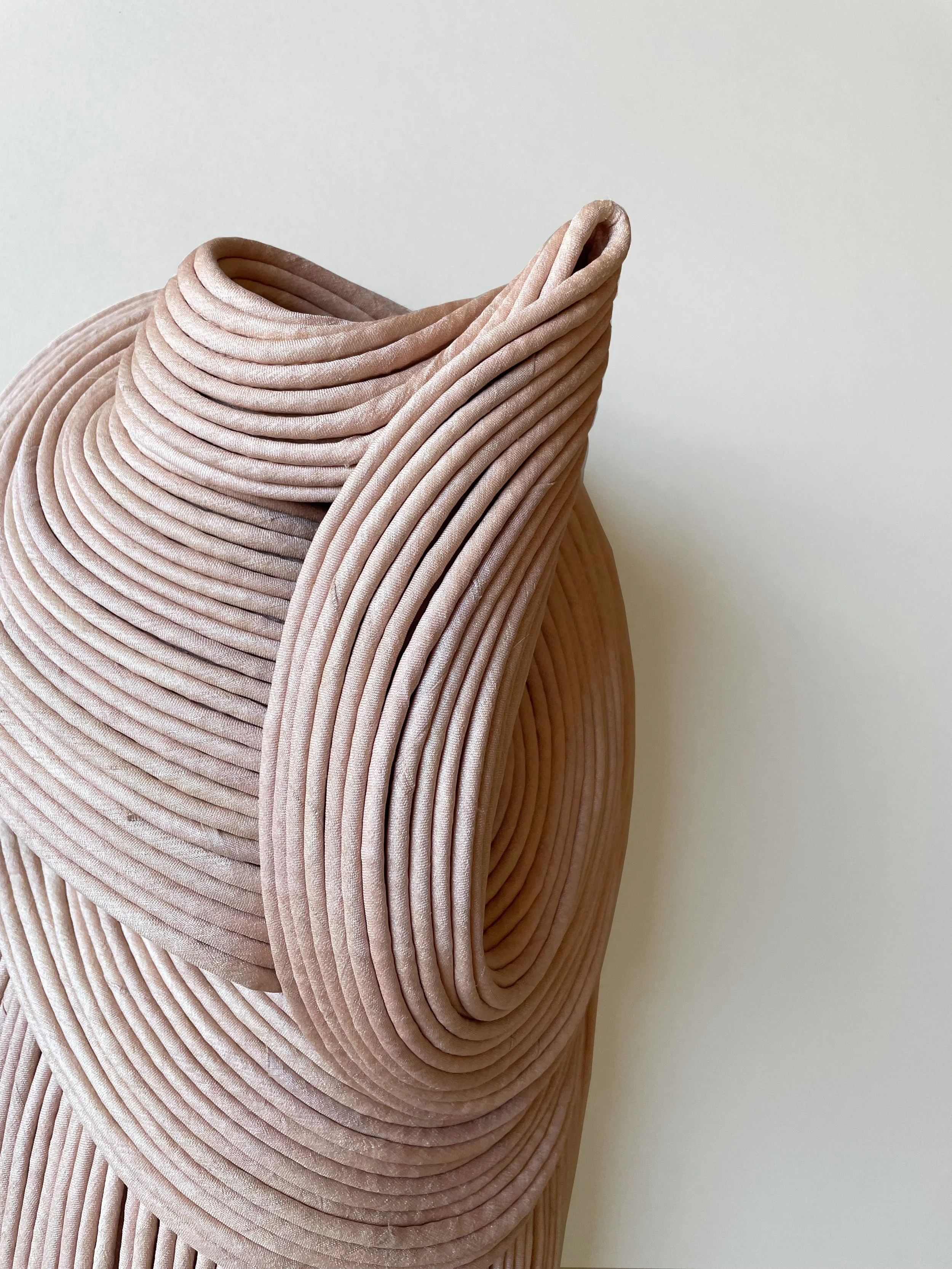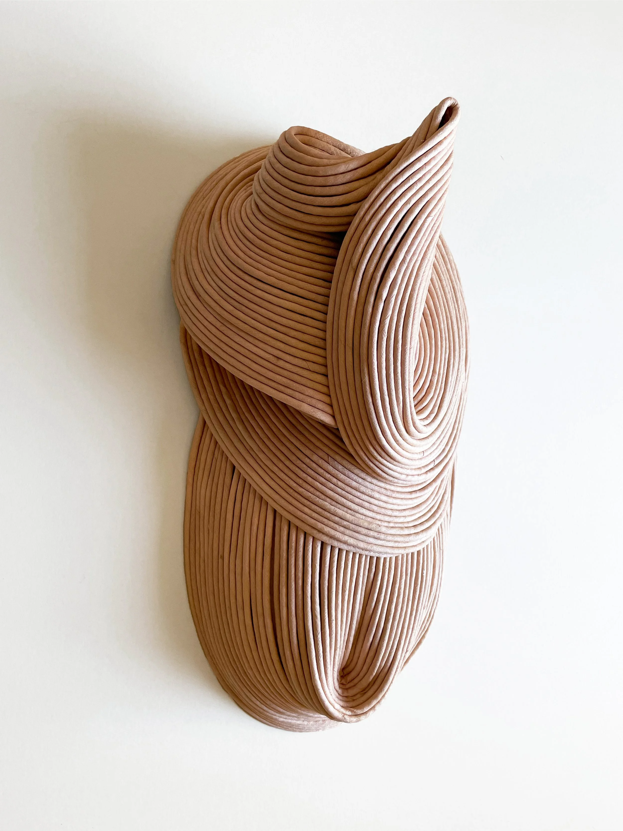 Aragonite, 2024. Hand-dyed wild silk with recycled cotton cord inside. Backing hardened. 51x28x16cm.