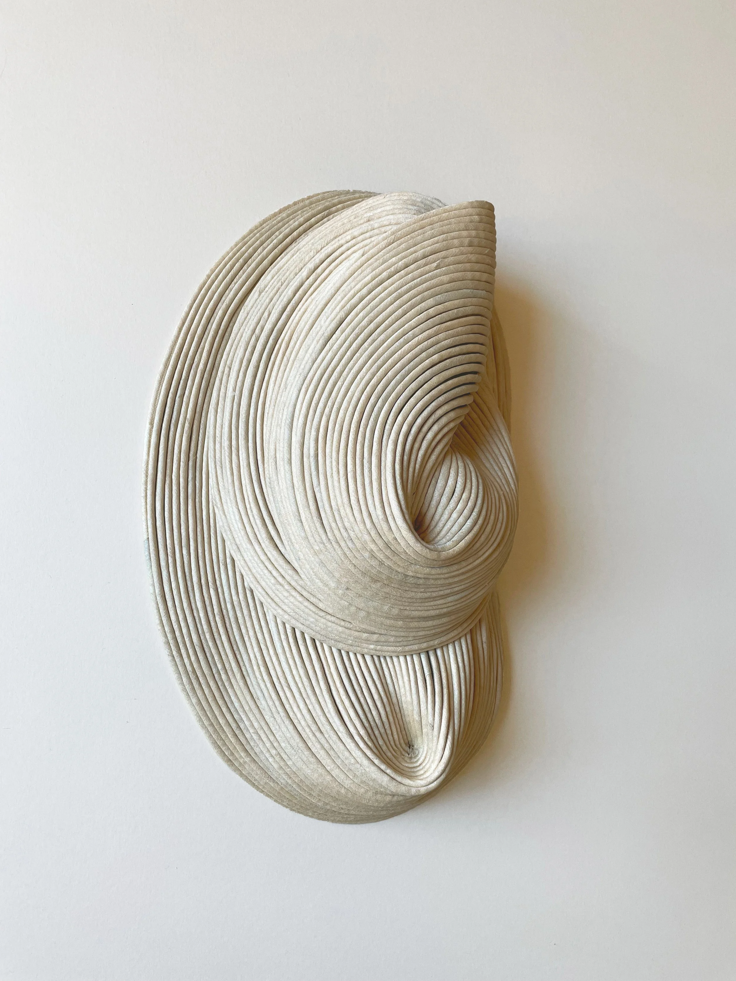 Wild silk hand-dyed with green indigo, recycled cotton cord inside. Backing hardened. 52x32x13cm. Sold.